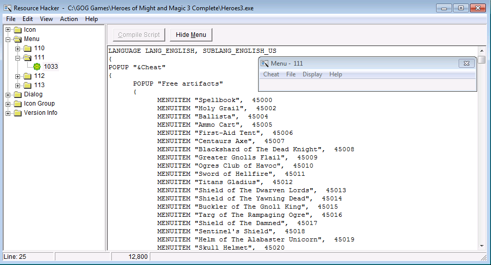 As we can see, the identifier of the regular menu is 110. So, let’s look at the menu that contains the Cheat menu: